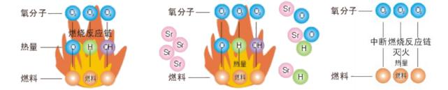 flame’s free radicals — terminating propagation of the fire.