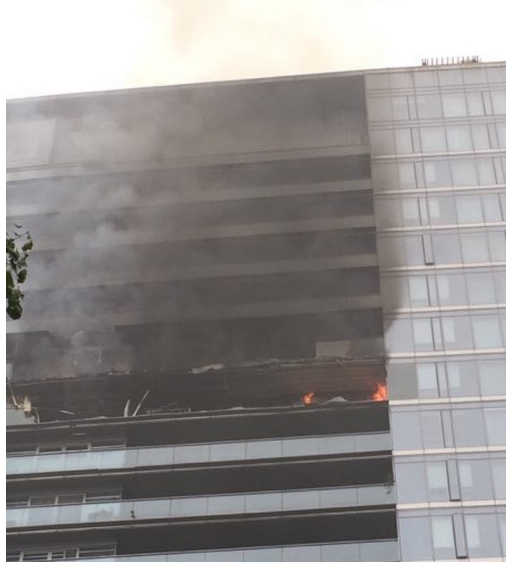 據(jù)初步了解,發(fā)生火災(zāi)的是藍(lán)色錢江2號樓18樓,火勢是從上午5點(diǎn)多起來的。17樓的一位住戶說,起火的房間里面應(yīng)該有2個(gè)大人3個(gè)小孩,一個(gè)保姆。