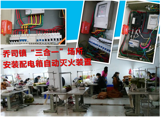 與以往“三合一”整治工作不同的是,此次工作的亮點(diǎn)是鎮(zhèn)政府為所有“三合一”場(chǎng)所的配電柜、配電箱安裝微型自動(dòng)滅火裝置,該裝置由杭州華神院士工作站自主研發(fā),安裝在高運(yùn)轉(zhuǎn)負(fù)荷、高火災(zāi)風(fēng)險(xiǎn)的配電柜、配電箱內(nèi),可無人值守地監(jiān)測(cè)火情,一旦發(fā)現(xiàn)明火即可秒速啟動(dòng)自動(dòng)滅火裝置,噴發(fā)一種名為熱氣溶膠的環(huán)保型乳白色滅火氣體,只需十余秒就可完全撲滅明火,并啟動(dòng)報(bào)警鈴音。該裝置的安裝,從高火災(zāi)隱患的電氣源頭部位杜絕了火患,為“三合一”場(chǎng)所內(nèi)的人員疏散和逃生贏得了寶貴的時(shí)間,有效提高了自防自救的能力。