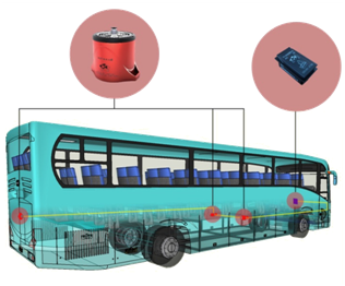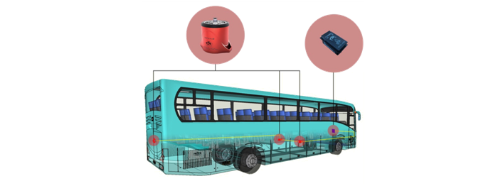 計(jì)案例:江西百路佳新能源6.5米長(zhǎng)客車(chē),內(nèi)有電池艙5個(gè),故需設(shè)計(jì)的保護(hù)區(qū)為5個(gè)保護(hù)區(qū),每個(gè)保護(hù)區(qū)配置1臺(tái)自動(dòng)滅火裝置(型號(hào)QRR0.03GW/SHS-AR23ZF),5個(gè)保護(hù)區(qū)內(nèi)的5臺(tái)裝置通過(guò)總承線束和駕駛員操作盤(pán)上的模塊聯(lián)接。