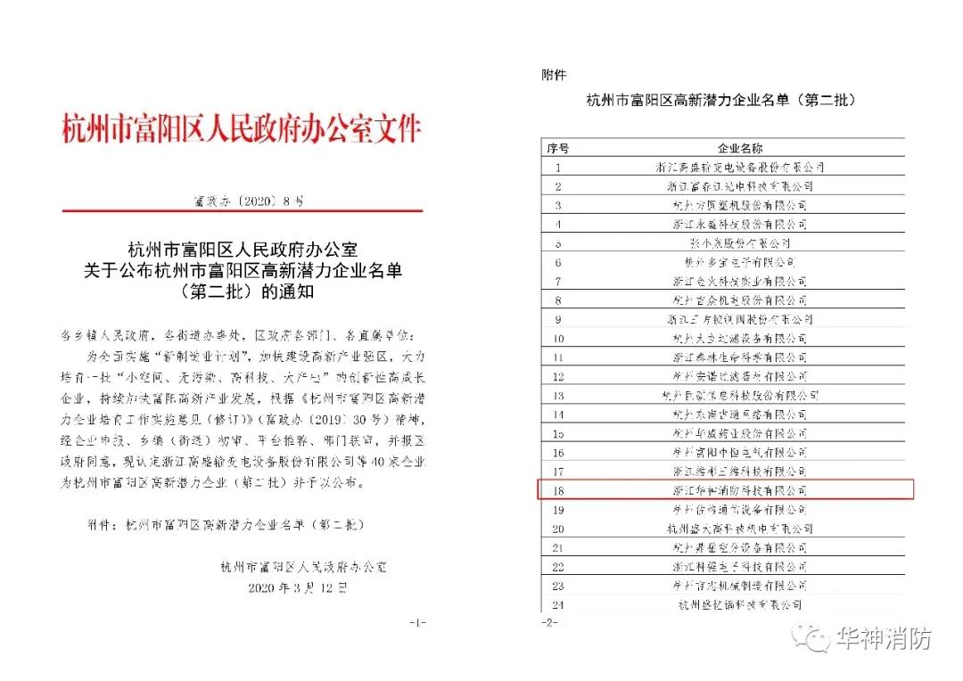 為全面實(shí)施“新制造業(yè)計(jì)劃”,加快建設(shè)高新產(chǎn)業(yè)強(qiáng)區(qū),大力培育一批“小空間、無(wú)污染、高科技、大產(chǎn)出”的創(chuàng)新性高成長(zhǎng)企業(yè),持續(xù)加快富陽(yáng)高新產(chǎn)業(yè)發(fā)展,根據(jù)《杭州市富陽(yáng)區(qū)高新潛力企業(yè)培育工作實(shí)施意見(jiàn)(修訂)》(富政辦〔2019〕30號(hào))精神,經(jīng)企業(yè)申報(bào)、鄉(xiāng)鎮(zhèn)(街道)初審、平臺(tái)推薦、部門(mén)聯(lián)審,并報(bào)區(qū)政府同意,認(rèn)定富陽(yáng)區(qū)40家企業(yè)成為杭州市富陽(yáng)區(qū)高新潛力企業(yè)(第二批),浙江華神消防科技有限公司名列其中!