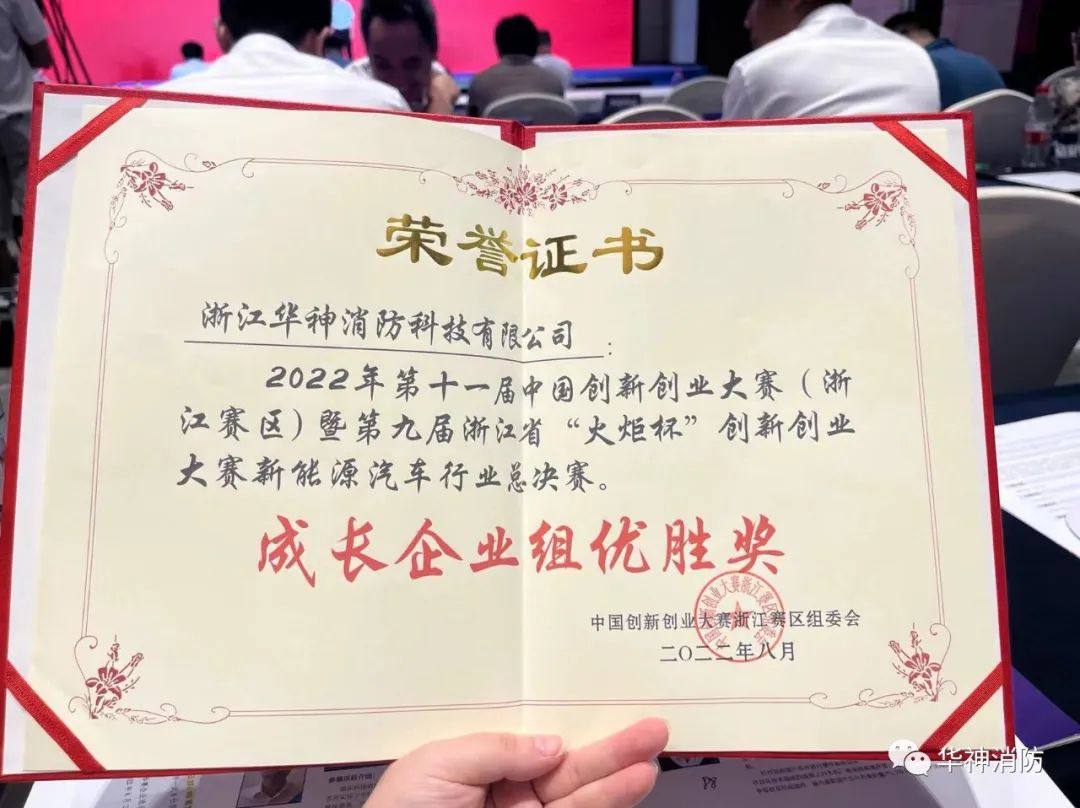 創(chuàng)新引領(lǐng),創(chuàng)業(yè)筑夢。8月25日,2022第十一屆中國創(chuàng)新創(chuàng)業(yè)大賽(浙江賽區(qū)),暨第九屆浙江省“火炬杯”創(chuàng)新創(chuàng)業(yè)大賽行業(yè)總決賽(新能源汽車行業(yè))在嘉興迎來巔峰對(duì)決!最終,浙江華神消防科技有限公司榮獲此次新能源汽車行業(yè)總決賽"成長企業(yè)組優(yōu)勝獎(jiǎng)"獎(jiǎng)項(xiàng)。
