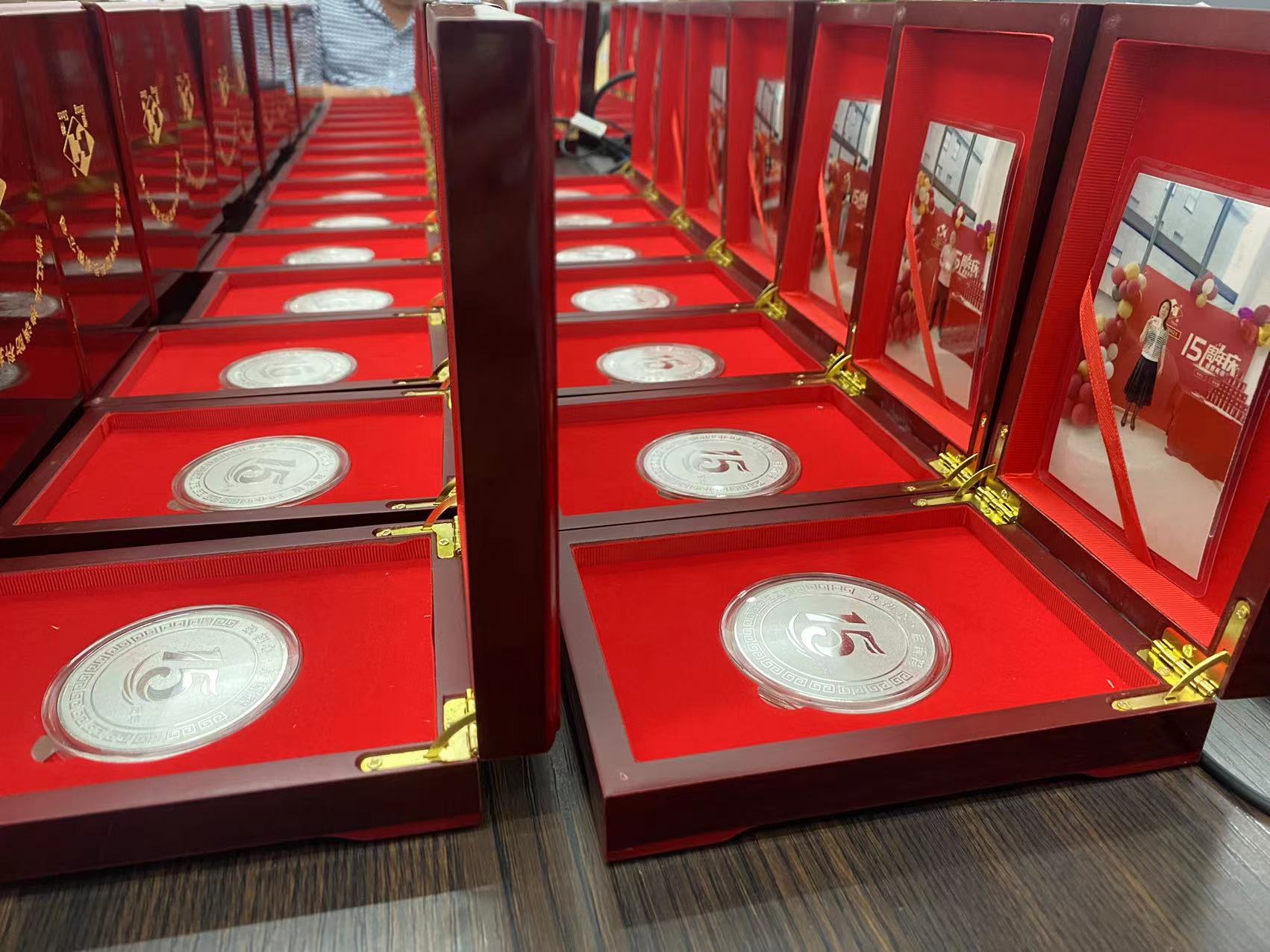 慶祝華神成立15周年的同時(shí)董事長(zhǎng)周建國(guó)、總經(jīng)理周斌和副總經(jīng)理周曉蓉為每位員工頒發(fā)了華神十五周年紀(jì)念幣,鼓勵(lì)大家繼續(xù)團(tuán)結(jié)、勤奮、敬業(yè)、忠誠(chéng)、熱情和智慧,譜寫(xiě)下一個(gè)十五年的歲月華章。