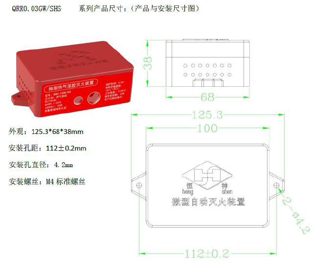 恒神微型熱氣溶膠滅火裝置是由引發(fā)器(電引發(fā)器/火災(zāi)探測(cè)線束)、熱氣溶膠發(fā)生劑和發(fā)生裝置、反饋元件及冷卻外殼等部件組成,無壓力容器、壓力閥等氣動(dòng)元件,具有效期長(zhǎng),免維護(hù),可靠性高的特點(diǎn)。